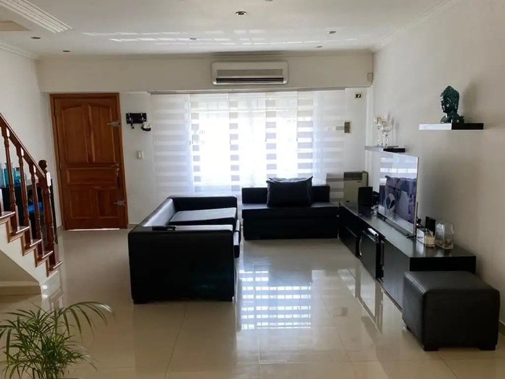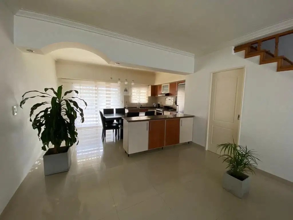 Alquiler de Triplex de 4 ambientes con las siguientes características: Planta baja: cocina integrada, living comedor, patio con parrilla, toilette y cochera. Planta alta 3 habitaciones, una en suite más un segundo baño para las otras habitaciones.
